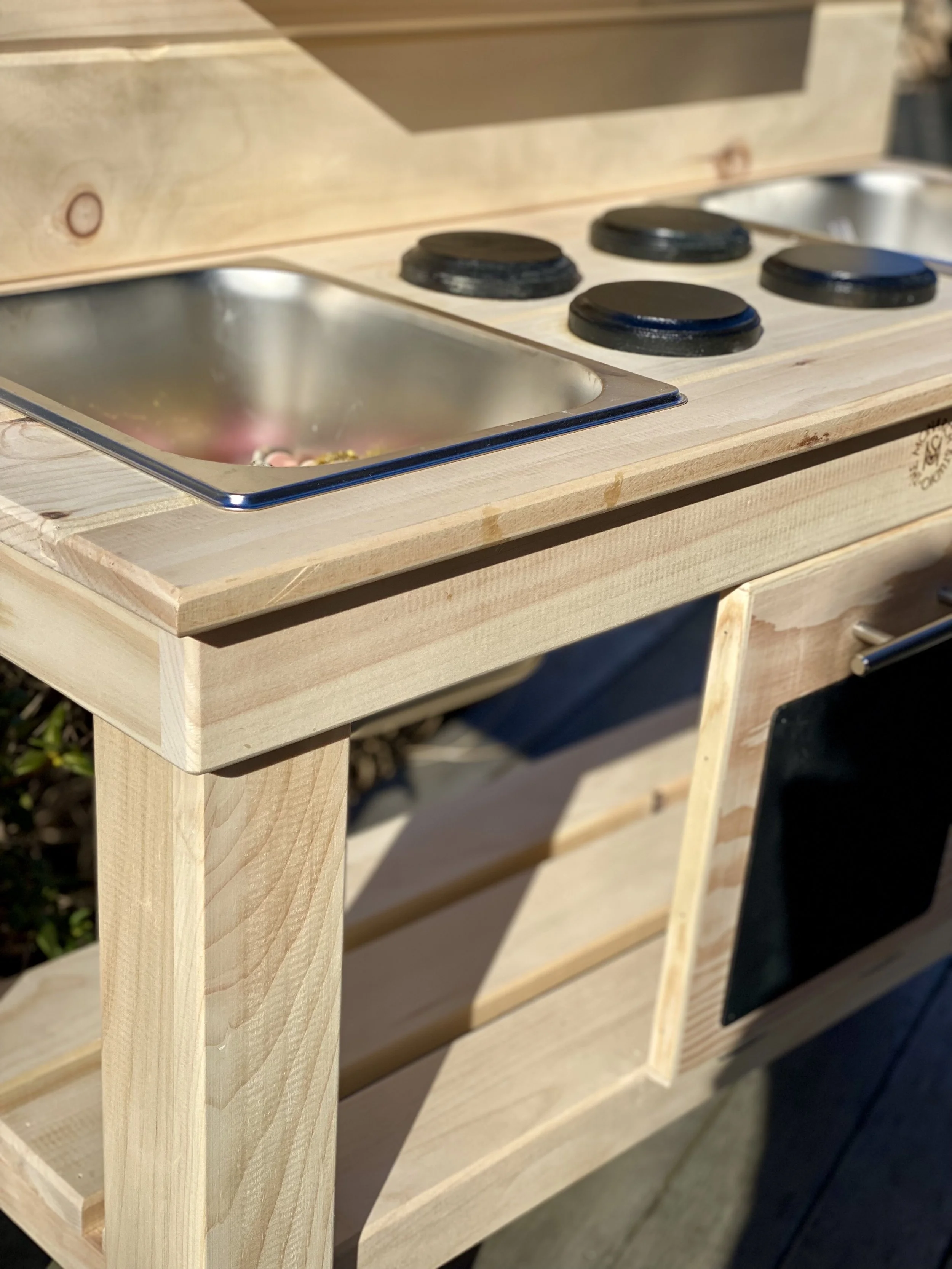 When we started selling mud kitchens, we were just about the only ones, but that has changed. Now a quick google search brings up a lot of Mud Kitchen options that range from $100 to over $1,000, as well as tons of DIY ideas. All of these are great options, it just depends on what’s right for your family. Here is some info on what sets us apart to help you decide if our Mud Kitchen is what’s right for your family.